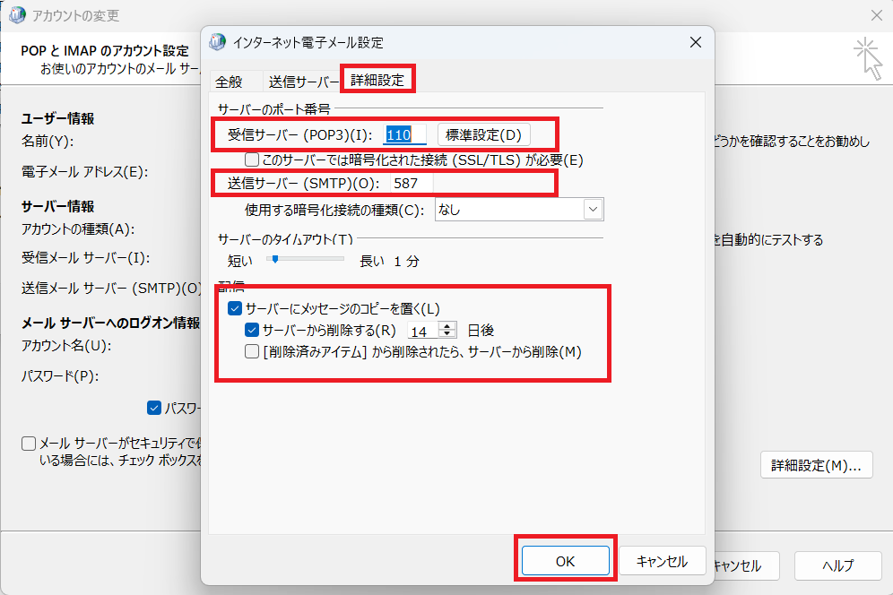 11.「詳細設定」タブは以下のようにする。できたら「OK」をクリック。