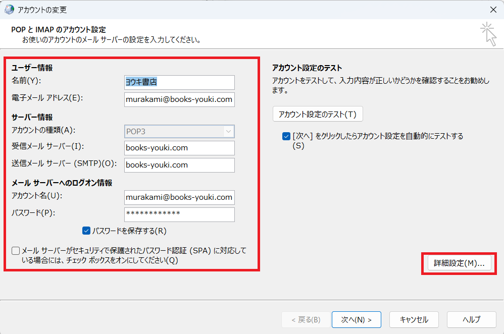8.ユーザー情報を入れる。それができたら「詳細設定」をクリック